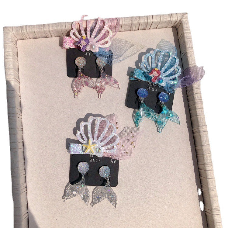 Mermaid hair and ear clip set for kids